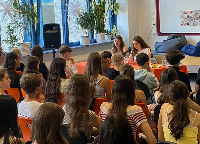 Auch in diesem Jahr besuchten uns wieder die Jugendliteraturpreisträger der OVAG in unserer Bücherei. Die Preisträgerin Marie Luise Wäß, die bereits im letzten Jahr zu den Preisträgern gehörte, inspirierte unsere Schüler aus den Klassen G9a und G9c dieses Jahr mit ihrem tiefgreifenden und sehr detailreichen Text „Walle“ über „Geschichten, die überall auf der Straße zu finden sind“.