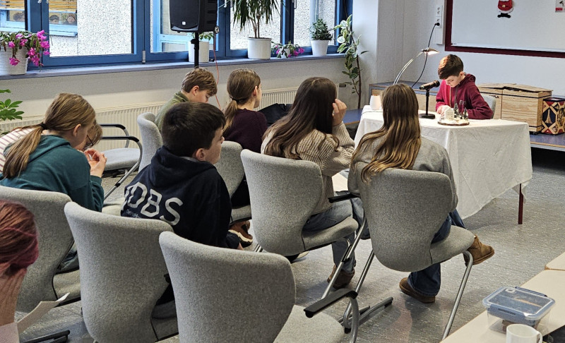 Wie jedes Jahr fand auch diesmal in der Vorweihnachtszeit der Vorlesewettbewerb des Börsenvereins des Deutschen Buchhandels für das 6. Schuljahr in der Bibliothek der Dietrich-Bonhoeffer-Schule statt. Logan Darius Bosse aus der G6b wurde vor Lucy Ann Gernin aus der (G6b) von der Jury zum diesjährigen Sieger gekürt.