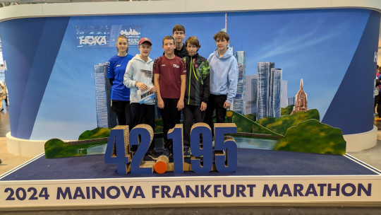 08. November 2024 - Am letzten Sonntag der Herbstferien waren Laura Schmidt, Konrad Brandl, Christian Jäger, Anton Landes, Marven Jung und Niklas Walter unter der Leitung von Sportlehrer Jörn Gabler beim Mini-Marathon in Frankfurt…Mädchenteams untermauern die Vormachtstellung der DBS im Handball